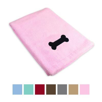 Bone Dry Embroidered Bone Microfiber Dog Bath Towel, Pink