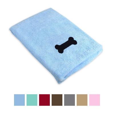Bone Dry Embroidered Bone Microfiber Dog Bath Towel, Blue