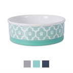 Bone Dry Lattice Non-Skid Ceramic Dog & Cat Bowl, 1.5-cup, Nautical Blue