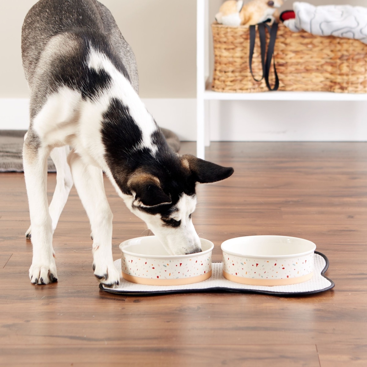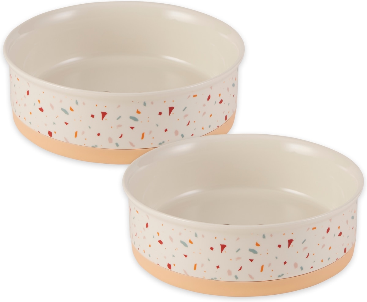 Bone Dry Non-Skid Ceramic Dog & Cat Bowl Set, Large: 3.75-cup, 2 count, Terrazzo