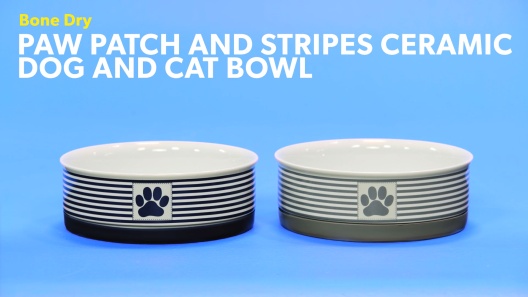 Bone Dry Paw Patch & Stripes Non-Skid Ceramic Dog & Cat Bowl, 0.75-cup