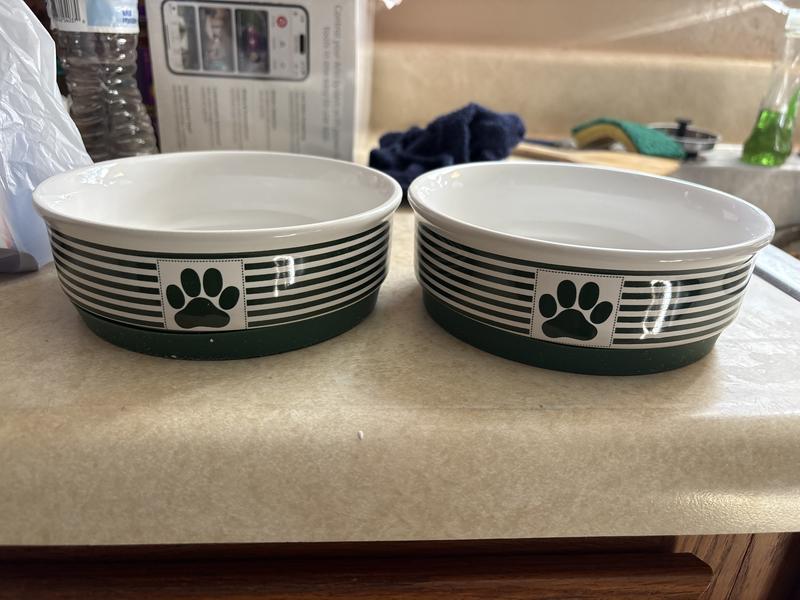 Bone Dry Paw Patch Stripes Non-Skid Ceramic Dog & Cat Bowl Set, 2 count, Hunter Green, Medium: 1.5-cup