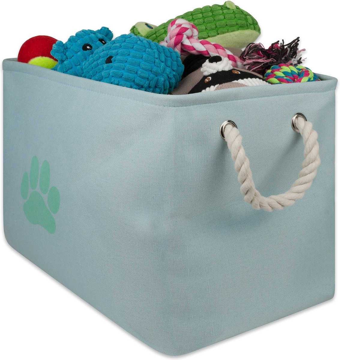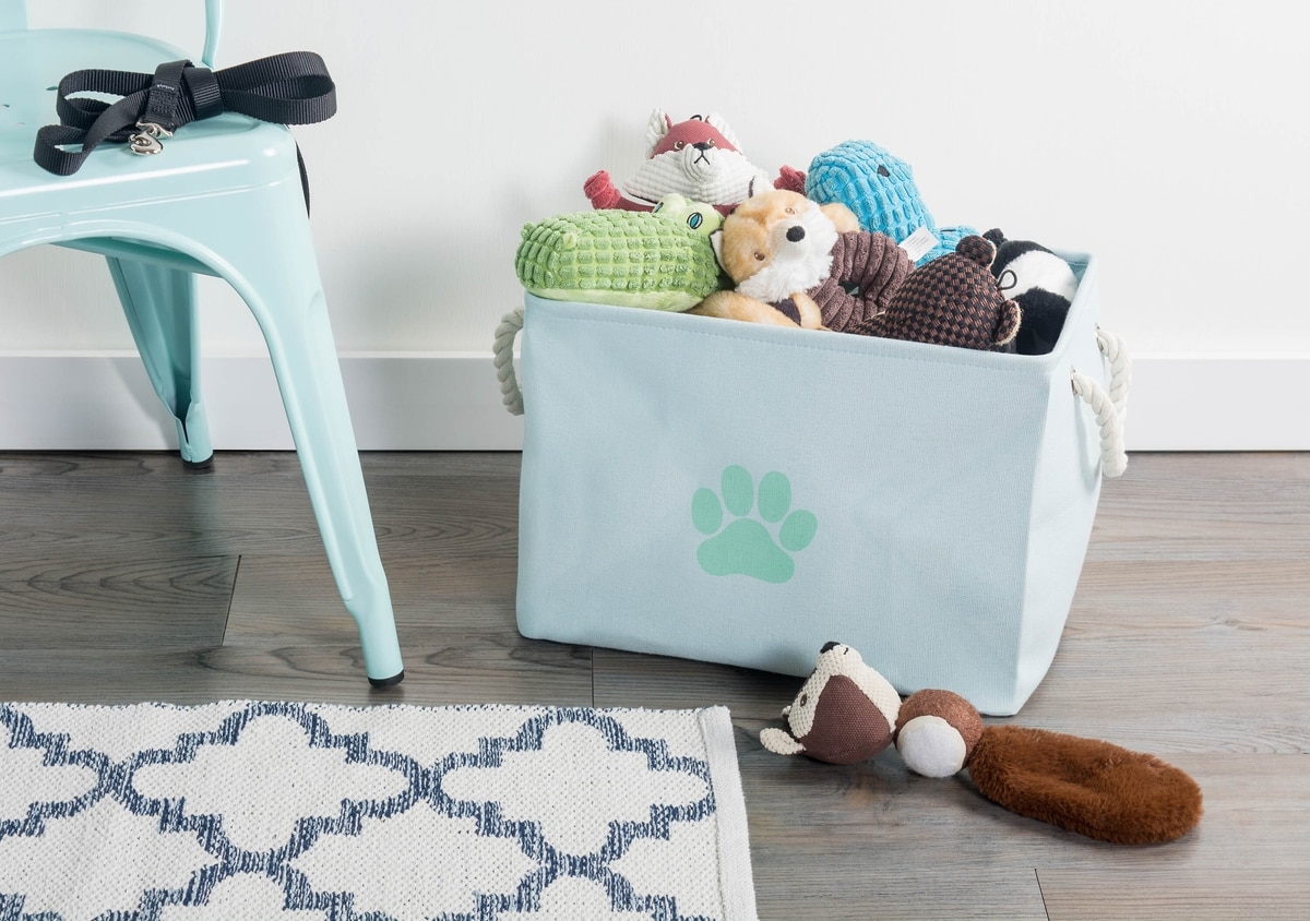 Bone Dry Paw Print Rectangle Dog Storage Bin, Aqua, Small