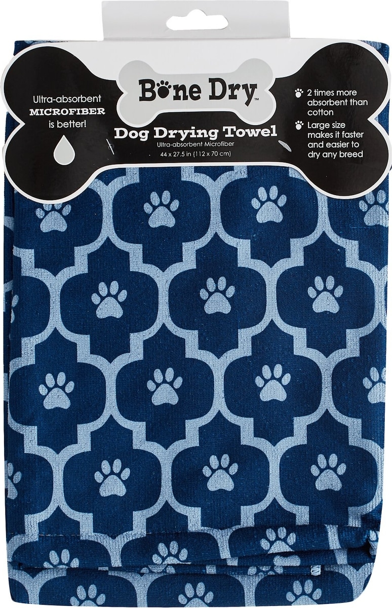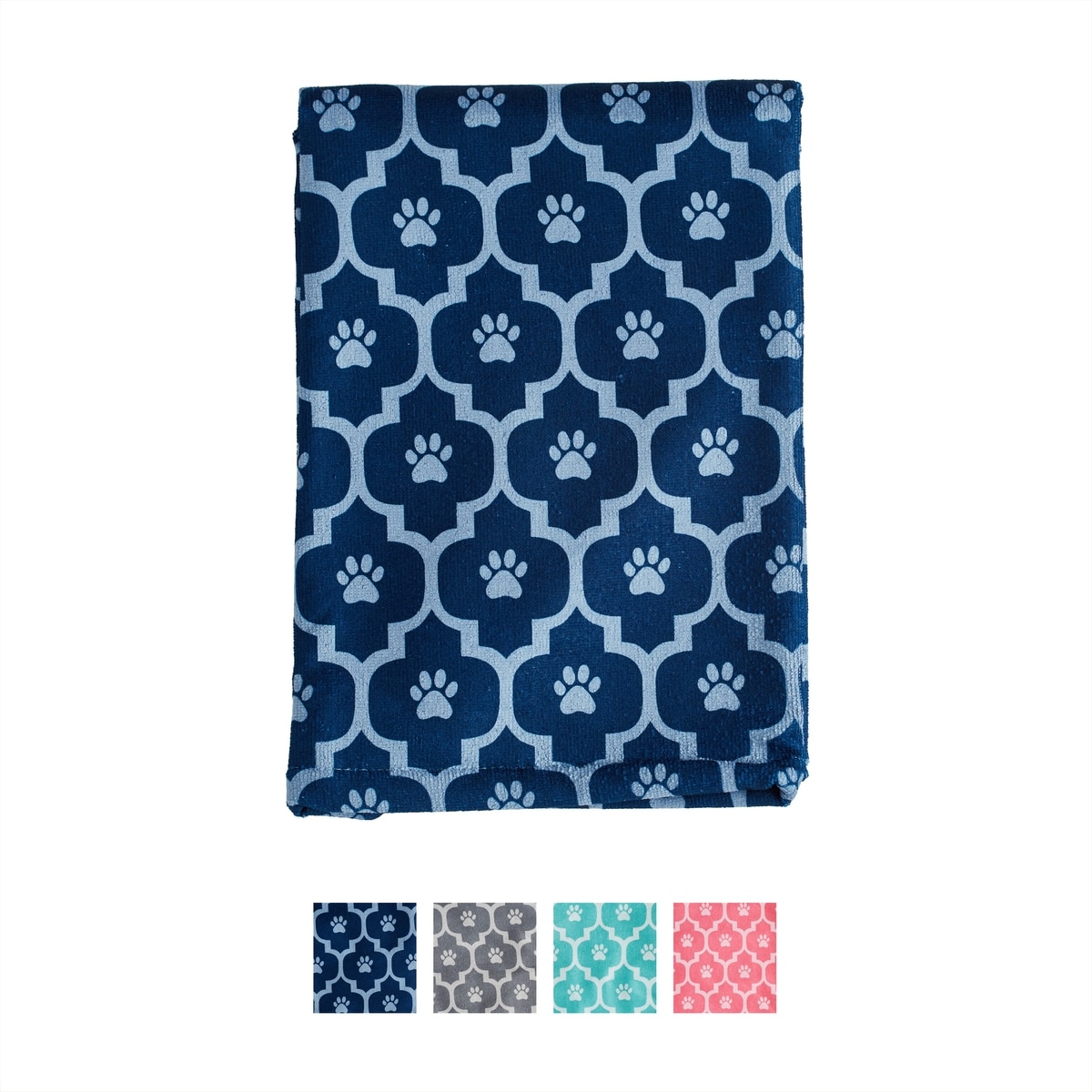 Bone Dry Printed Moroccan Microfiber Dog & Cat Bath Towel, Navy