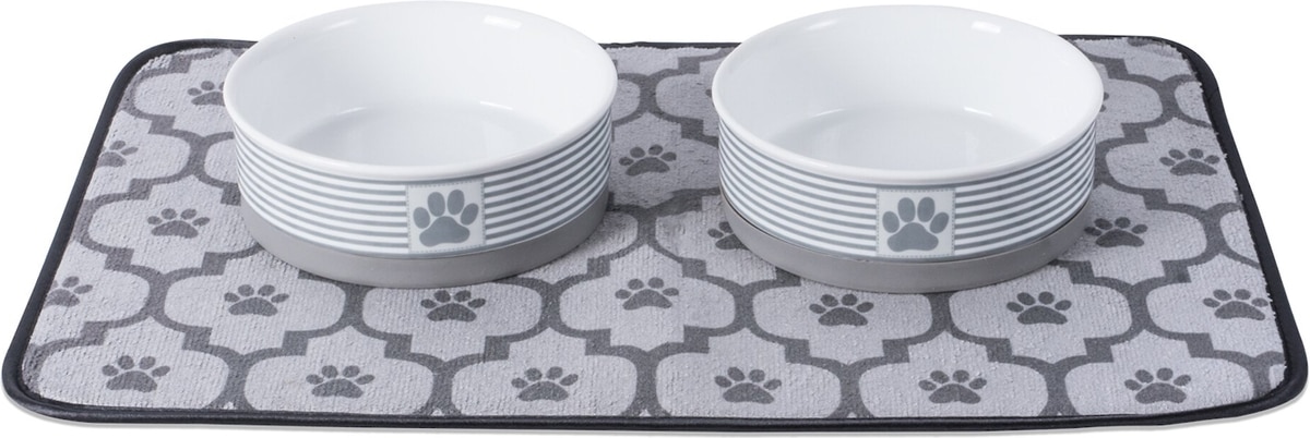 - DealBone Dry Lattice Paw Print Dog & Cat Food Mat, Gray, Small$8.55 Chewy PricePromo, New Customers Only: Spend $49+, Get $20 eGift Card +1 deal