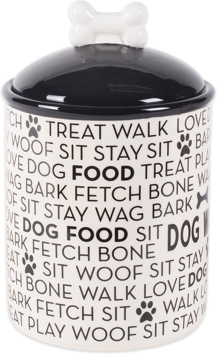 Bone Dry Text Print Ceramic Dog Treat Canister
