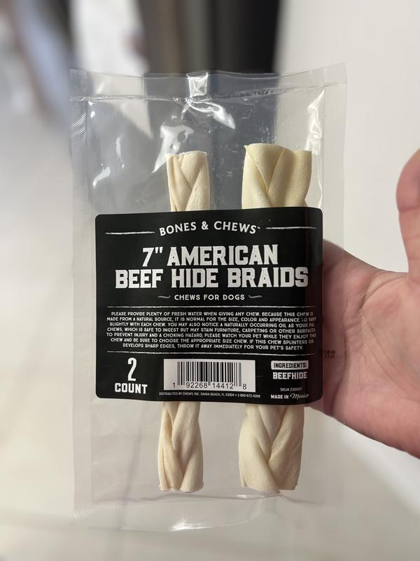 Bones & Chews Beefhide Braid Dog Treats, 7", 2 count