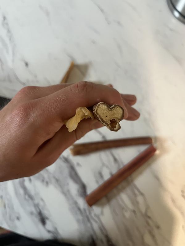 My dog loves these but the quality is all over the place. In my pack of 6, 3 of them look great and full while the others 3 appear to be cut in half. They are very