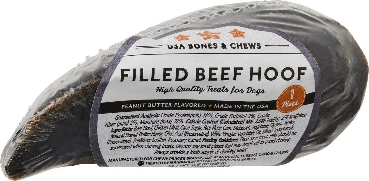 - Bones & Chews Made in USA Cheese & Bacon Flavored Filled Beef Hooves Dog Treats, 1 countBy$3.99 Chewy Price$3.79 Autoship PricePromo, New Customers Only: Spend $49+, Get $20 eGift Card