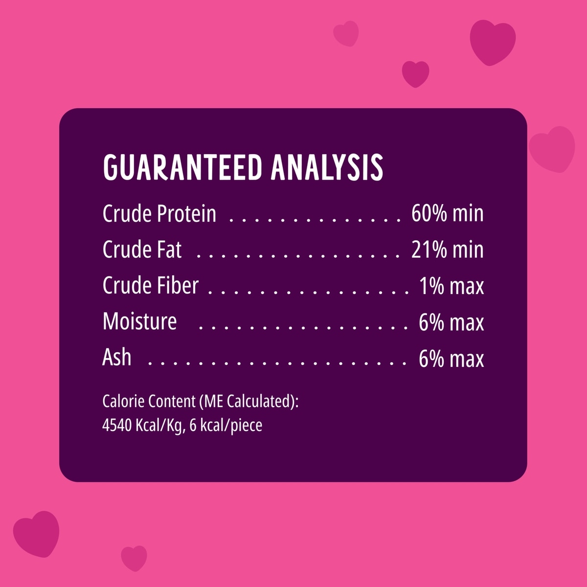 These treats are made with 100% freeze-dried ingredients to preserve natural flavors and nutrients.
