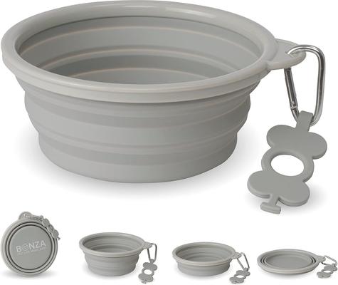 Bonza Collapsible Silicone Dog Bowl, Light Grey, X-Large, 1 count