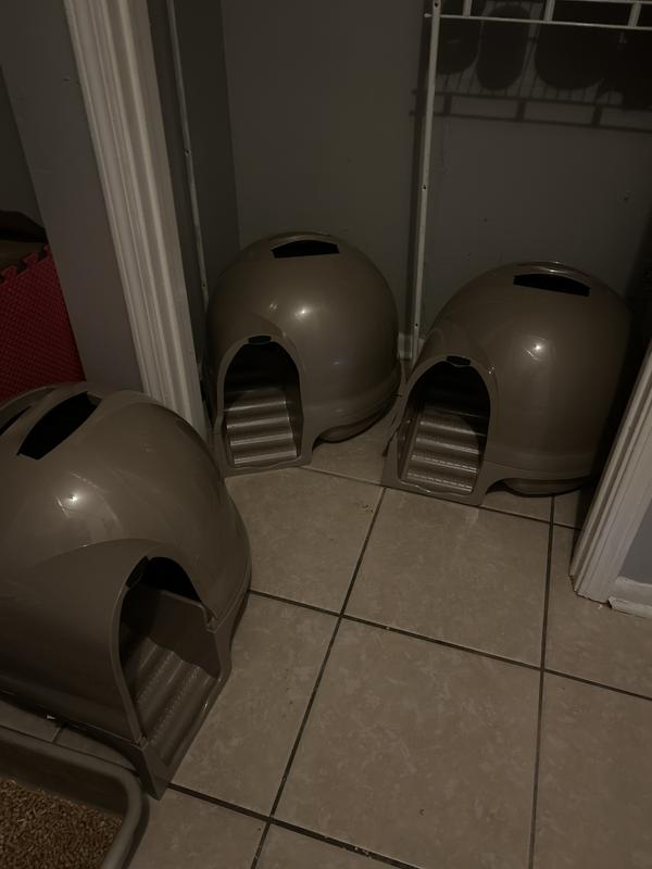 The plastic for the litter box is waterproof and the dome snaps into place to contain litter scatter.