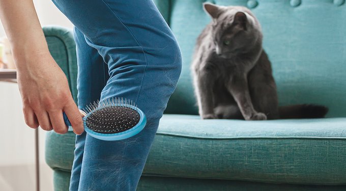 BOSHEL pin brush with rubber back cleaner makes cleanup fast and easy after grooming. It lifts pet hair from clothes, furniture, car seats, and bedding. Works on dog and cat fur to keep your home tidy. No more mess - just swipe and go.