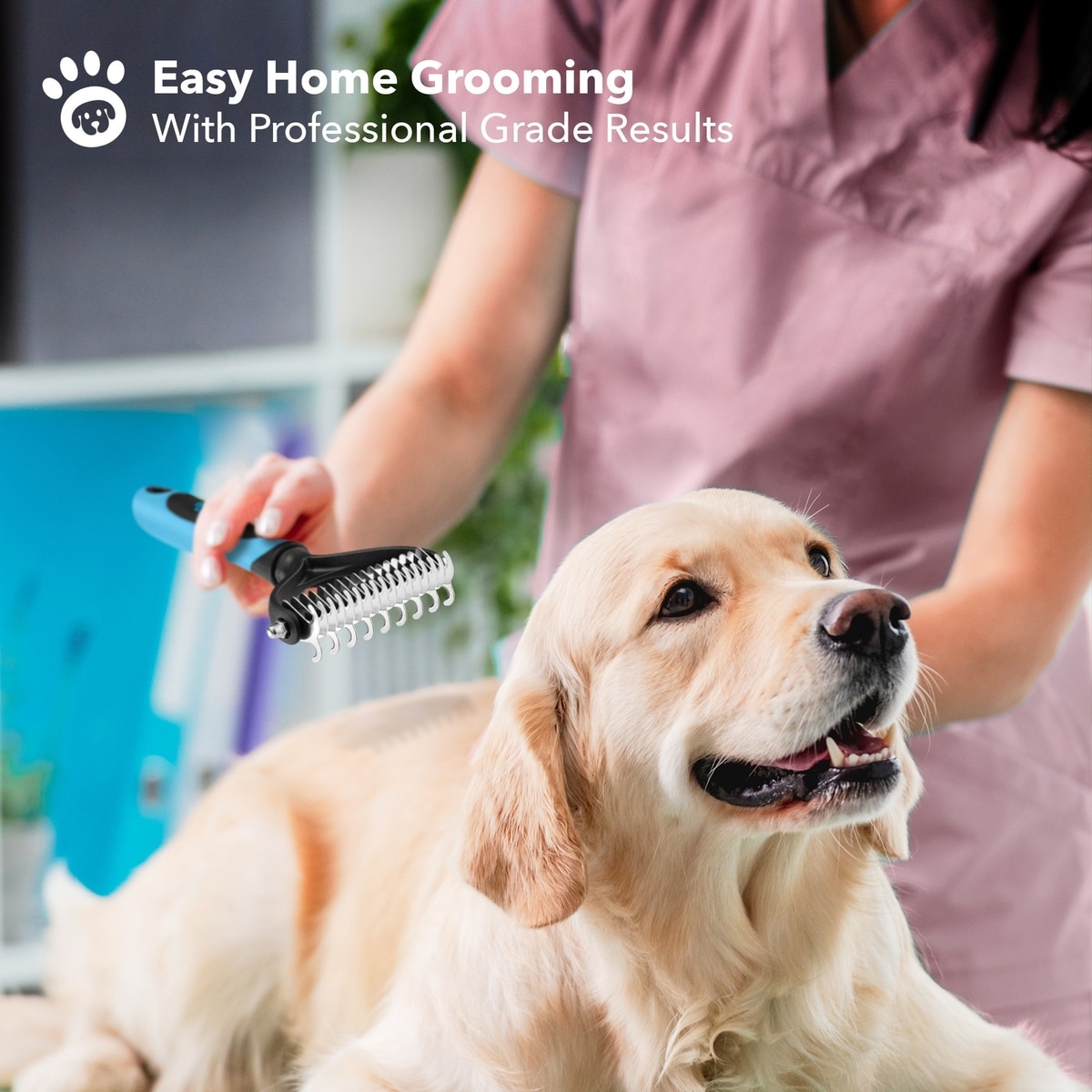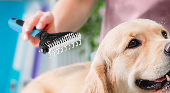 BOSHEL undercoat rake and pet comb removes loose hair, knots, and tangles from your pet’s coat. It grooms dogs and cats with ease and keeps shedding under control. Use it at home for quick touch-ups or full grooming sessions.