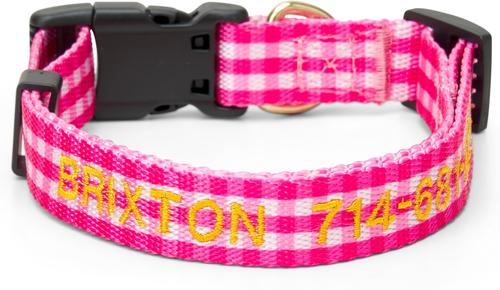 Boulevard Personalized Gingham Dog Collar, Pink, Small