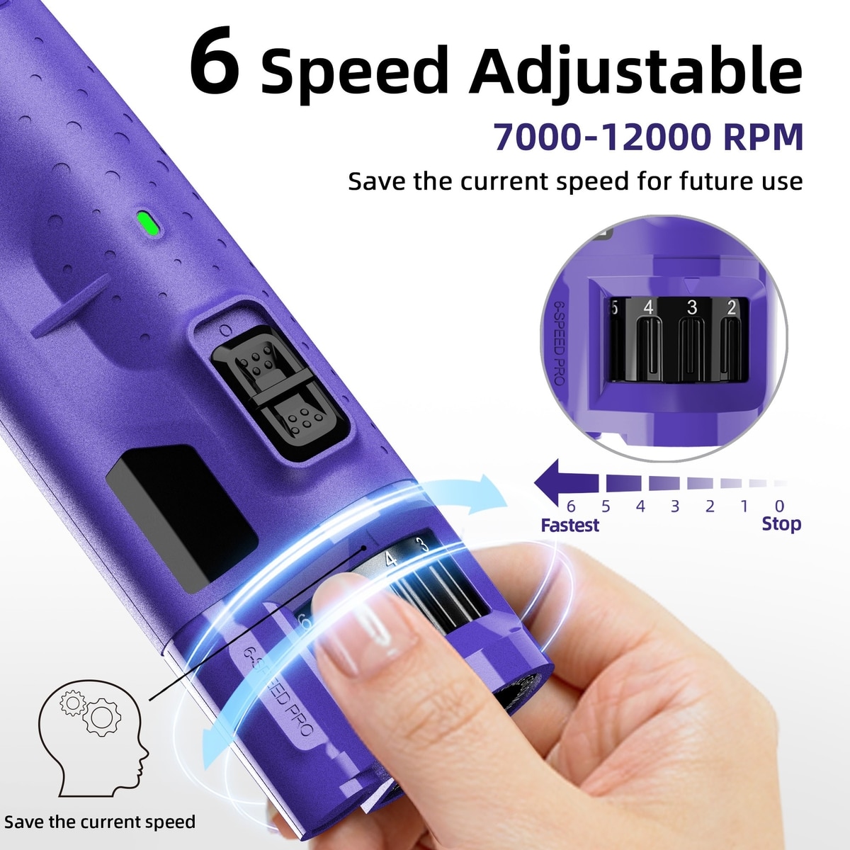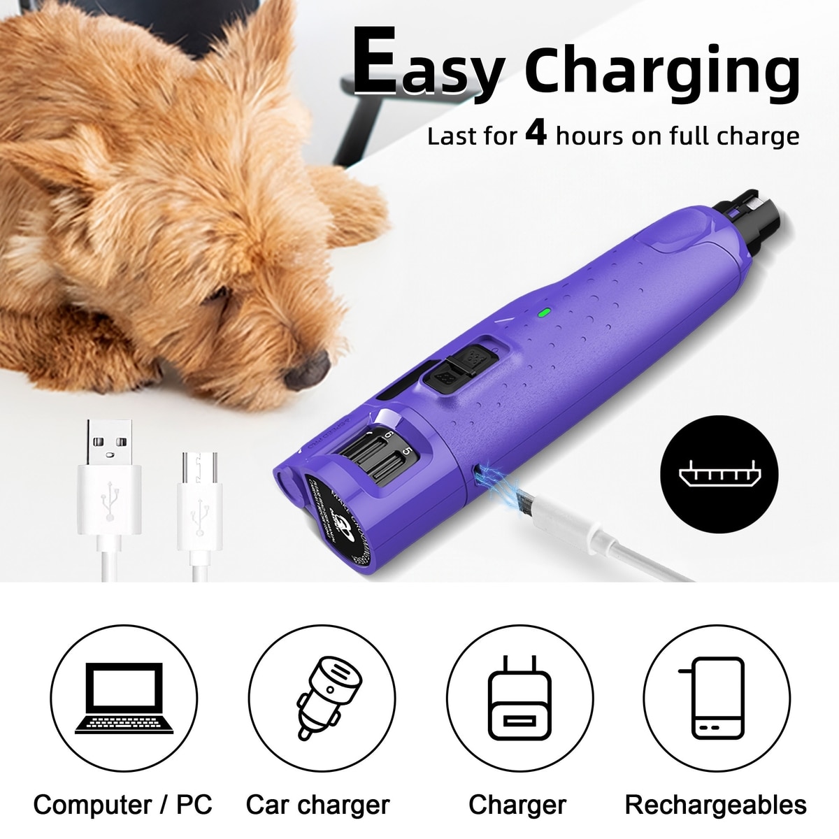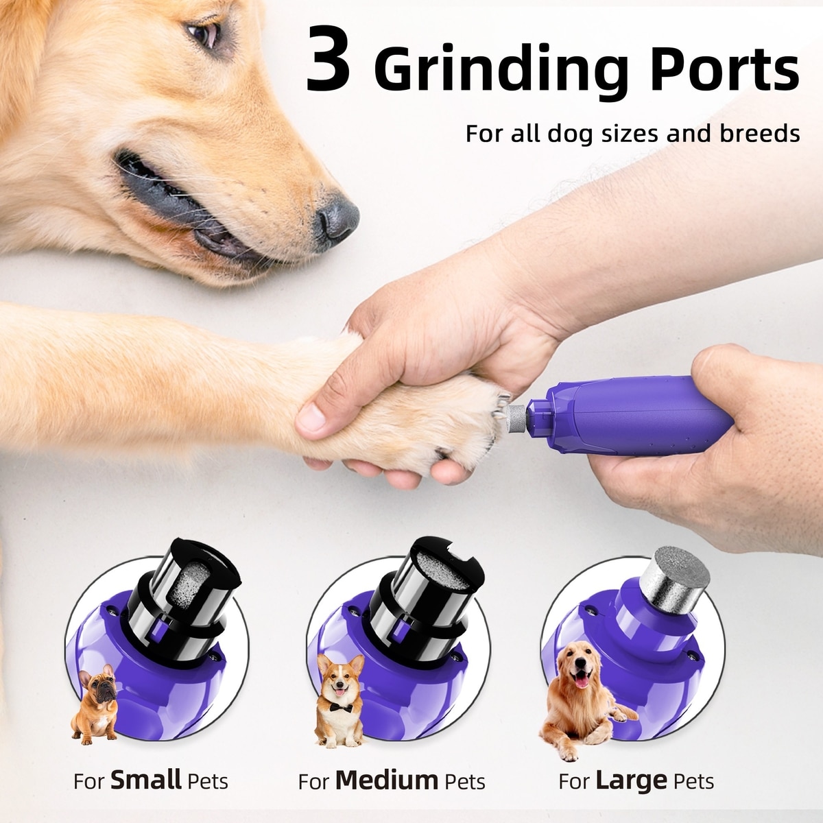 Bousnic 6-Speed Pro Quiet Rechargeable Dog & Cat Nail Grinder with 2 LED Lights, Purple