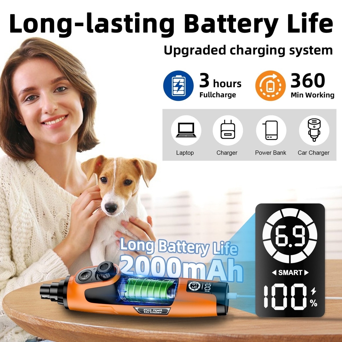 Bousnic Smart 6-Speed Quiet Cat & Dog Nail Grinder, Orange