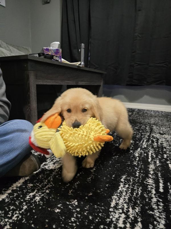 - This ducky friend is perfect for toss, tug, or cuddle sessions with your furbaby.