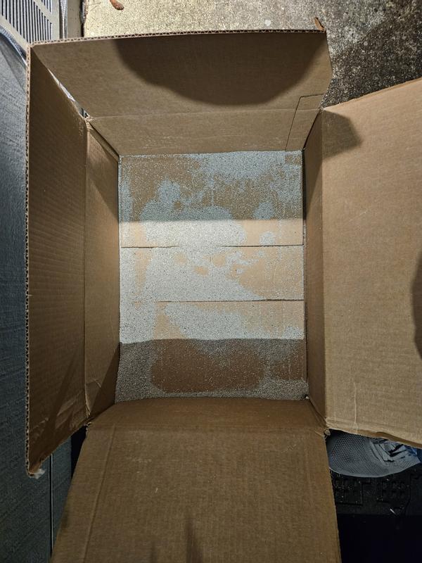 It was BURST and the contents (cat pan litter) was all over the inside of the box. THIS SHOULD BE ZERO STARS!!! The package was leaking litter outside the box and