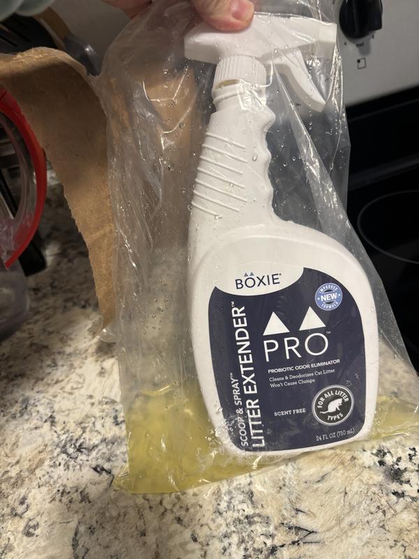 Scoop & Spray Litter Extender Boxie Scoop & Spray Litter Extender extends the life of litter by using probiotics to target and eliminate odors at the source. Save money and keep the litter box and your home smelling fresher for longer with just a few sprays!