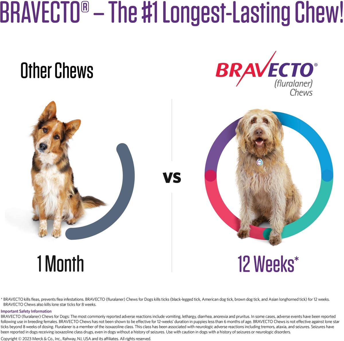 • BRAVECTO Chews last nearly 3X longer than other monthly chews