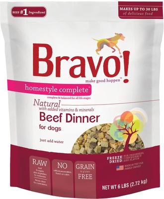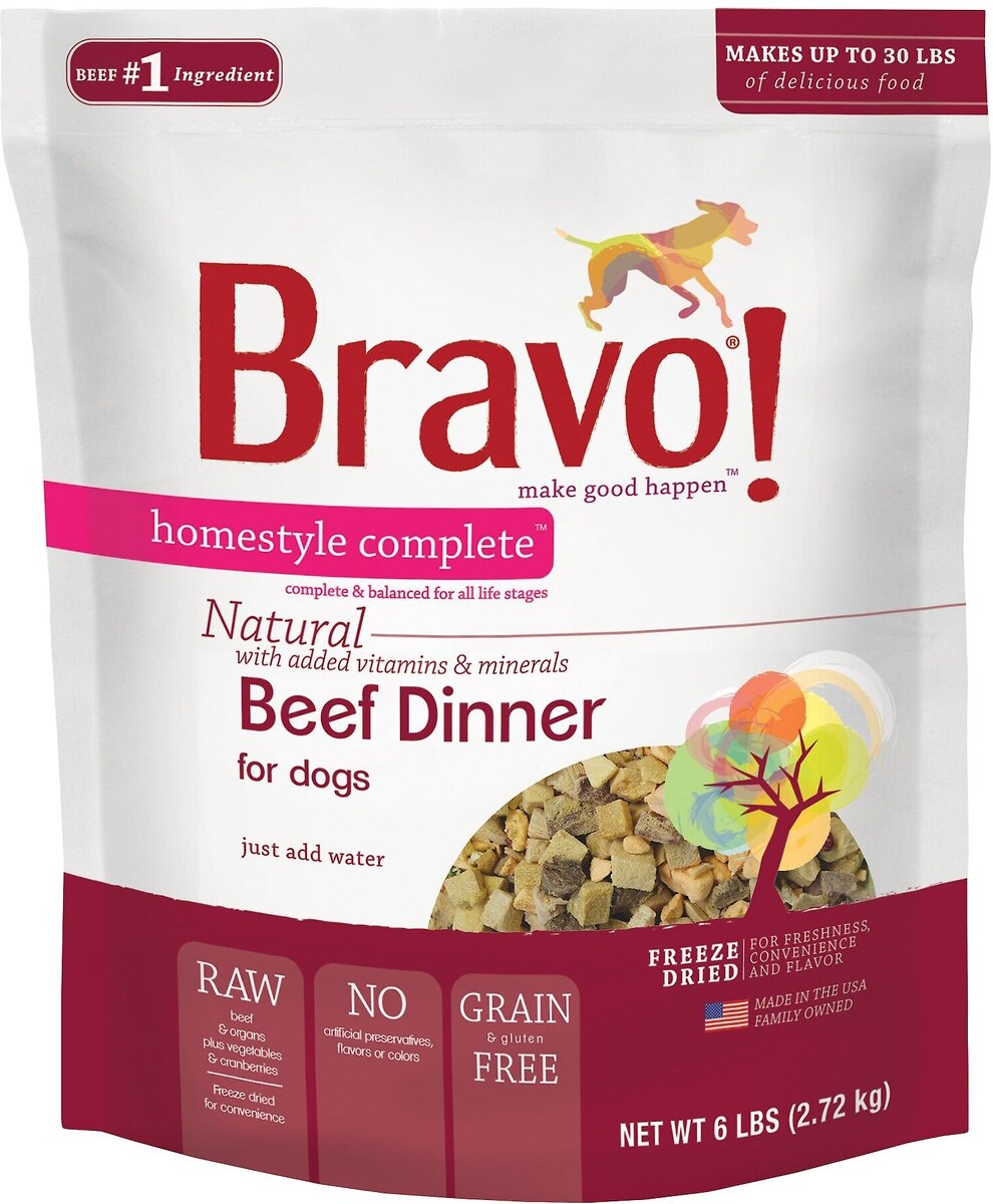 Bravo! Homestyle Complete Beef Dinner Grain-Free Freeze-Dried Dehydrated Dog Food, 6-lb bag