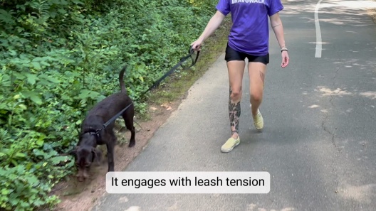 BravoWalk engages with leash tension caused by your dog’s pulling. It offers a hands-free solution to leash pulling so no need for a remote.