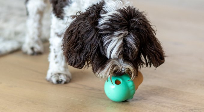 Brightkins treat dispensers add a brain-teasing challenge to snack time. Sniffing and licking can help keep dogs calm, and 20 minutes of sniff work is equivalent to a one-hour walk. Their two-piece design makes them easy to clean, too.