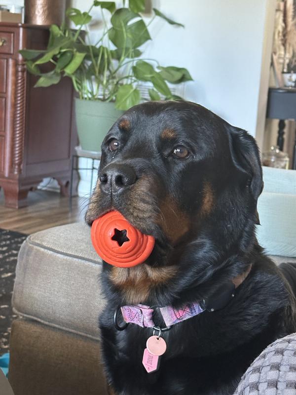Made from durable, non-toxic rubber free from latex and BPA, Brightkins Tough and Tumble toys are safe for dogs who are tough on their toys. Great with treats or kibble, they provide a bouncing, wobbling challenge for dogs of all breeds and ages.