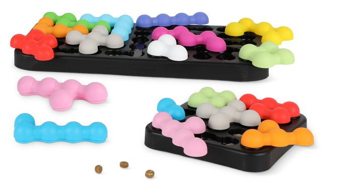 Brightkins Kanoodle Dog Edition Inspired by the hit puzzle game for people, Kanoodle: Dog Edition challenges pets to use their brain, nose, and paws to solve the puzzle. Each size features unique treat compartments–perfect for pets big or small to get puzzling!
