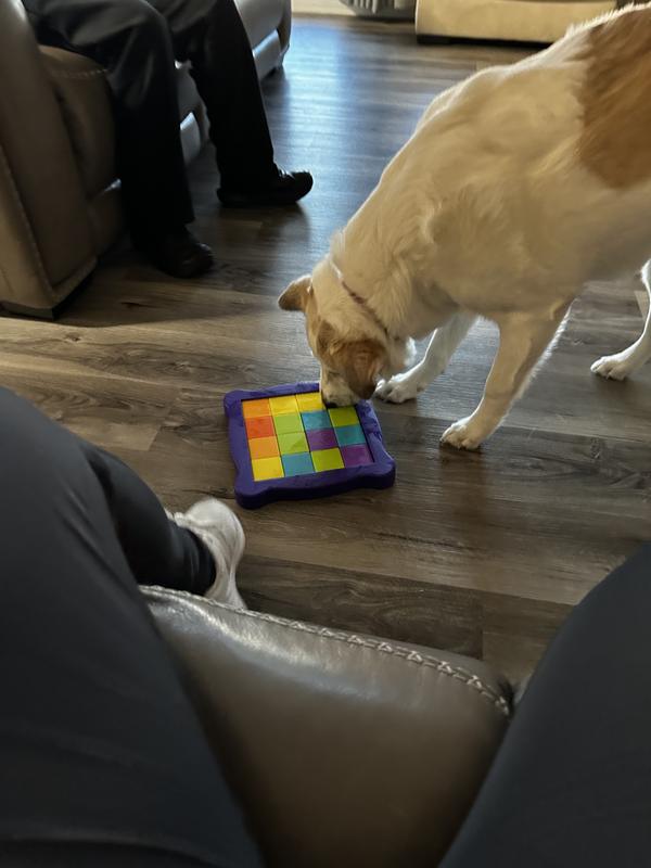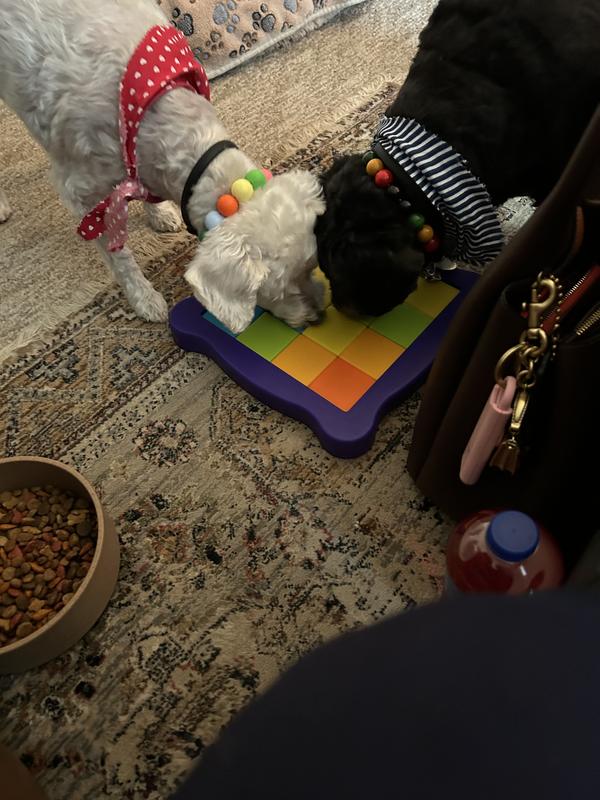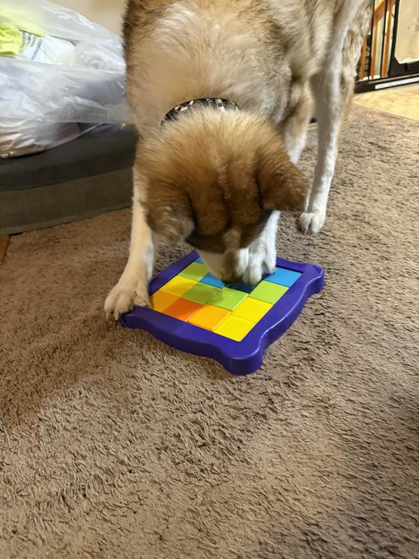 Hidden treat compartments challenge pets to sniff, lick, and paw through snack or mealtime. Great for slowing fast eaters, each puzzles includes a training guide written by a professional dog trainer to support enrichment and learning.