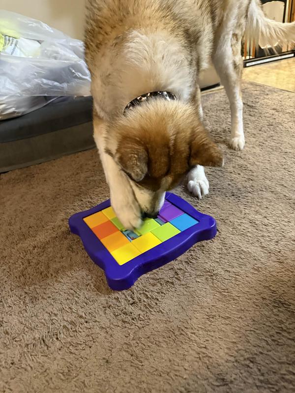 Brightkins Pup Pixel Treat Puzzle Dispensing Dog Toy, Multi Color, 13.02 x 11 x 1.77-in