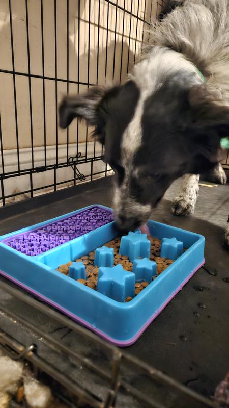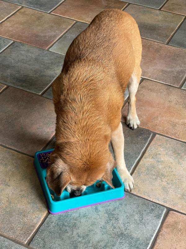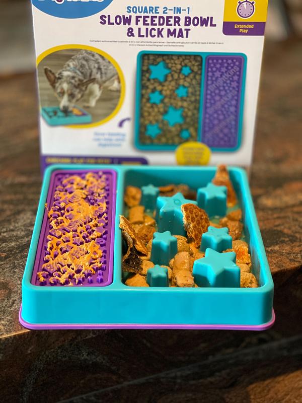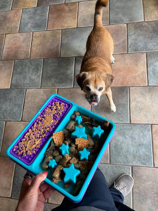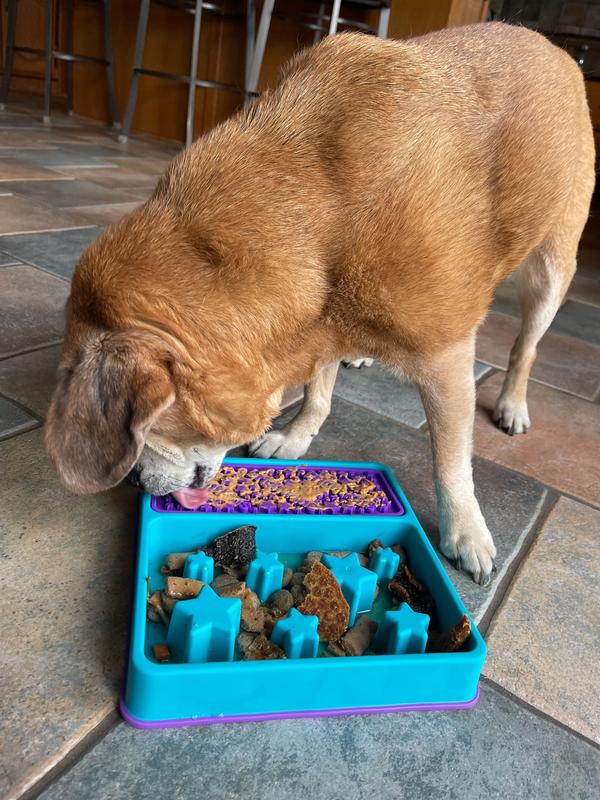 I feed my dogs all of their meals in puzzle bowls or slow feeders. I have several different ones that i fill and freeze for meals. This Brightkins Square 2-in-1 slow feeder is my new favorite because it's easy to fill and easy to clean (I put the mat in the dishwasher). I don't freeze this one because I don't feel like I need to because it takes the dogs a while to finish it even without freezing. I think I need to get another one as a back up!