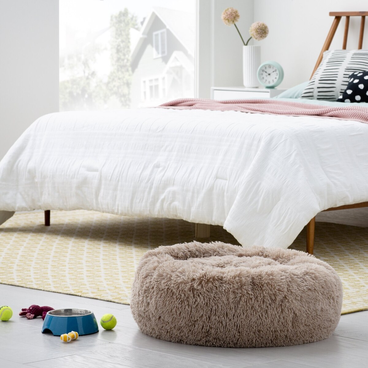 - Cozy donut shape is perfect for pets to relax and sleep comfortably through the night.
