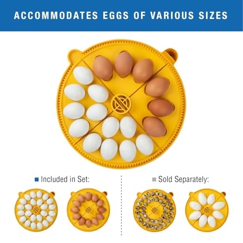 This egg incubator can accommodate up to 40 quail eggs with optional quadrant sets that are sold separately.