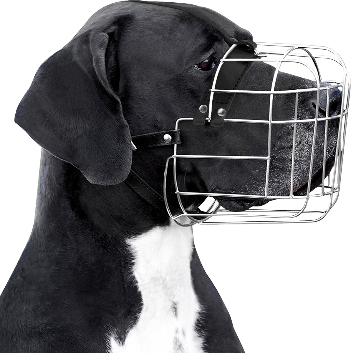 BRONZEDOG Mask with Leather Straps Muzzle for Extra Large Dogs, Steel, X-Large