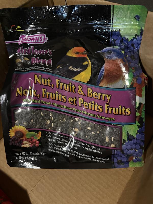 - Brown's Bird Lover's Blend Nuts, Berries & Bugs! Gourmet Wild Bird Food, 5-lb bag$15.99 Chewy Price$15.19 Autoship PricePromo, New Customers Only: Spend $49+, Get $20 eGift Card