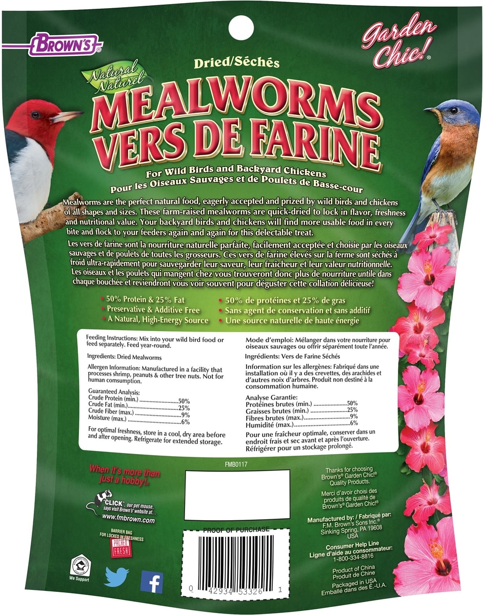 Brown's Garden Chic! Dried Mealworms for Wild Birds, 7-oz bag