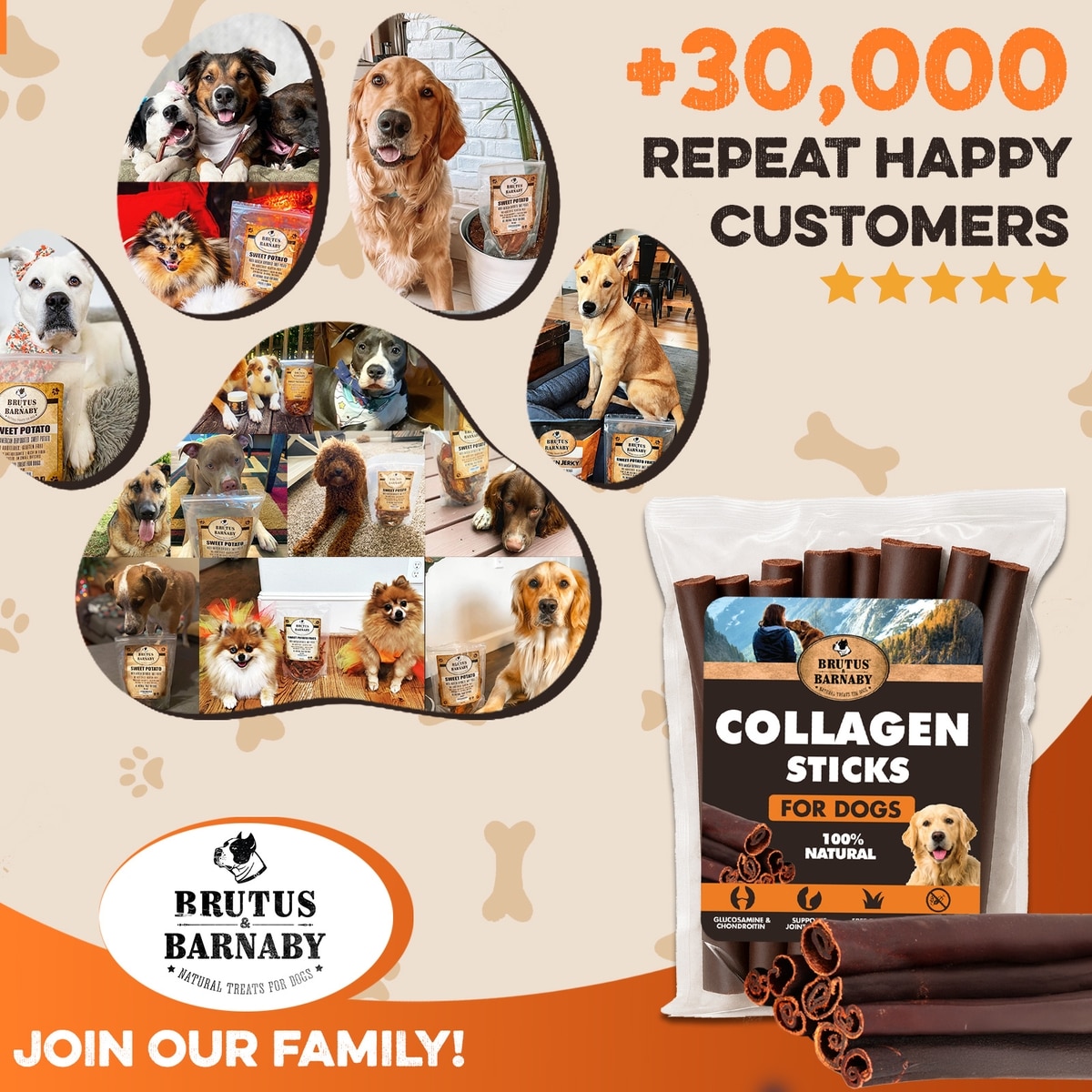 Brutus & Barnaby 6-in Thick Beef Collagen Sticks Dog Treats, 12 count
