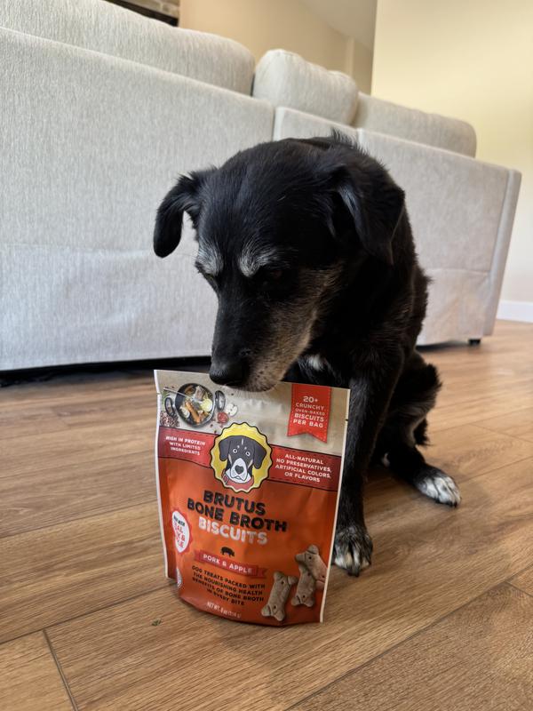 Brutus Broth Bone Broth Pork & Apple Biscuits Natural Limited Ingredient Crunchy Dog Treats, 8-oz bag​