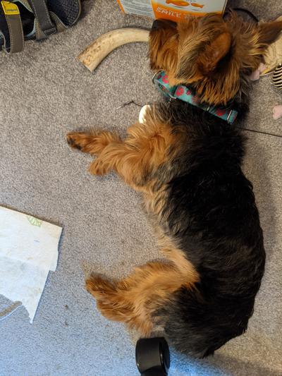 Just got these for my 8 month old Silky Terrier who loves chewing anything she can get her paws on. She immediately took to these and ran off to find a safe place