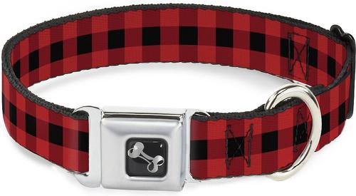 This collar is perfect. Love the seat belt like buckle. It's sturdy and never comes off when my dogs ruff house around. I've had the collars with the squeeze type metal buckles that came off during dog play. This one never comes off. The red/black Buffalo plaid looks great on my brindle and white Boxer. I'm ordering one for all my dogs.