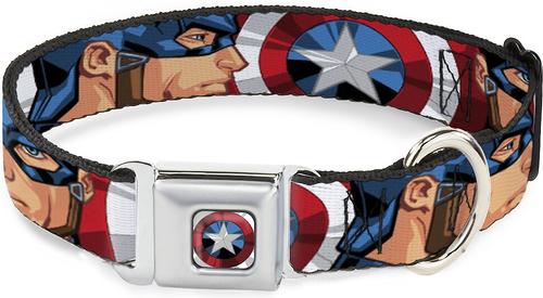 Buckle-Down Captain America Shield Polyester Dog Collar, Small: 9 to 15-in neck, 1-in wide