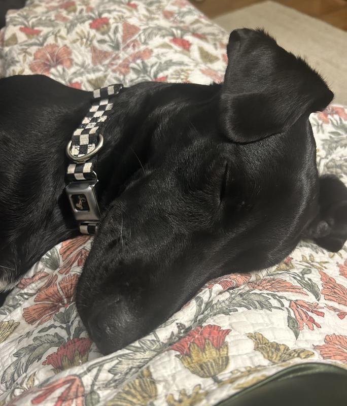 • The miniature authentic seatbelt buckle makes the collar easy for you (not your pup) to take off—simply press the center button to release the clasp!