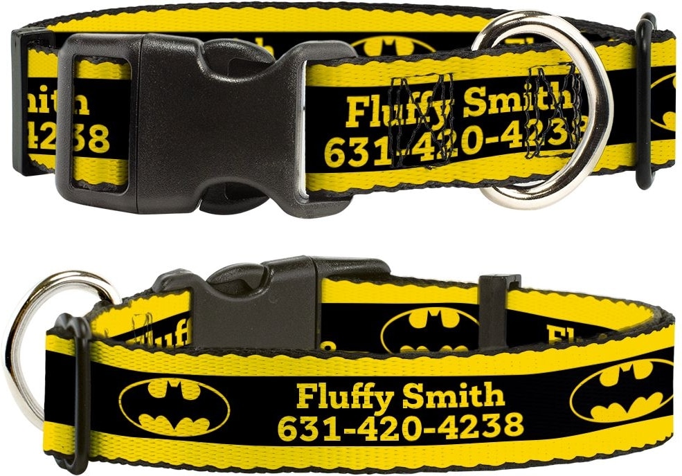 Buckle-Down DC Comics Batman Logo Stripe Personalized Dog Collar, Small