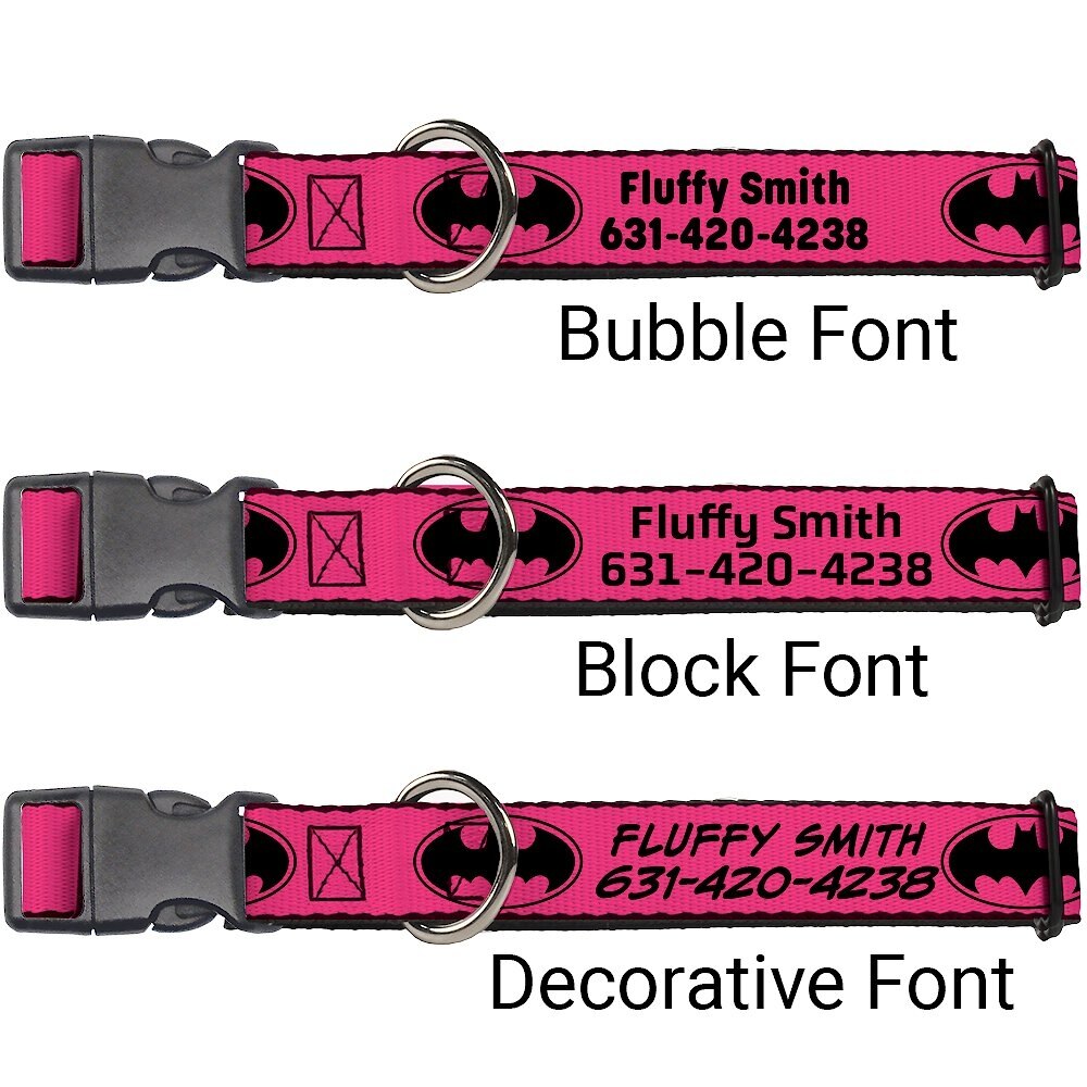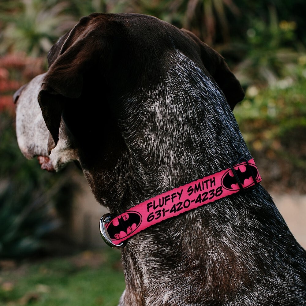 Buckle-Down DC Comics Batman Signal Personalized Dog Collar, Fuchsia & Black, Medium