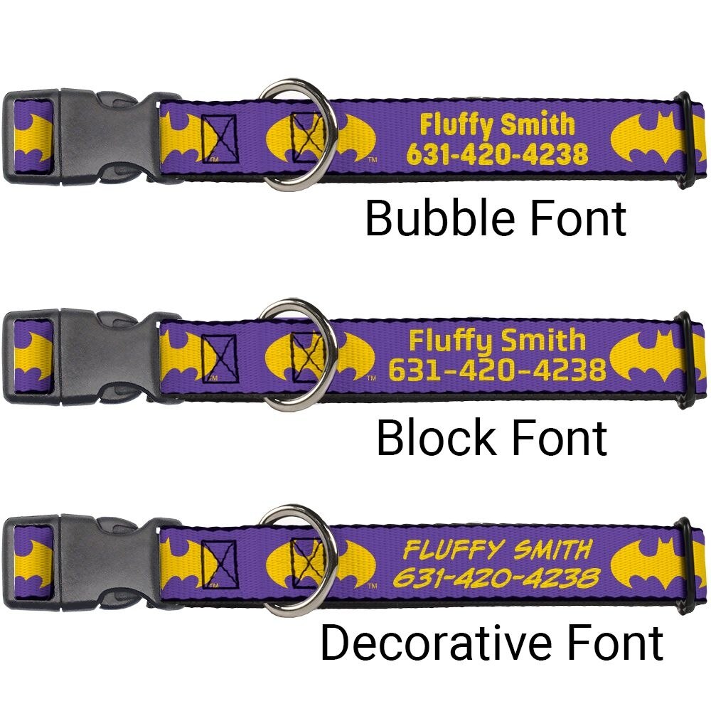 Buckle-Down DC Comics Batman Signal Personalized Dog Collar, Purple & Yellow, Small