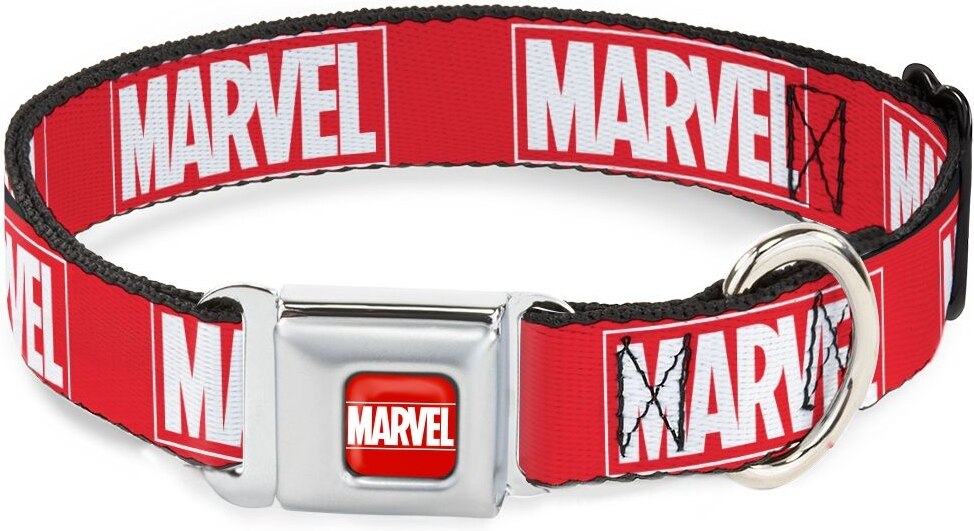 Buckle-Down Marvel Red Brick Logo Polyester Dog Collar, Small Wide: 13 to 18-in neck, 1.5-in wide