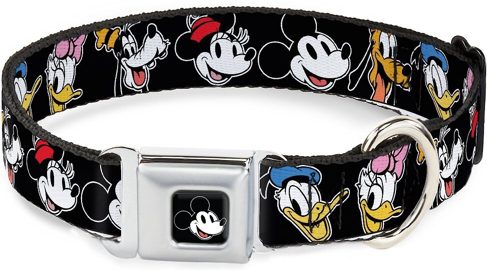 Buckle-Down Mickey Mouse Smiling Face Polyester Dog Collar, Small Wide: 13 to 18-in neck, 1.5-in wide