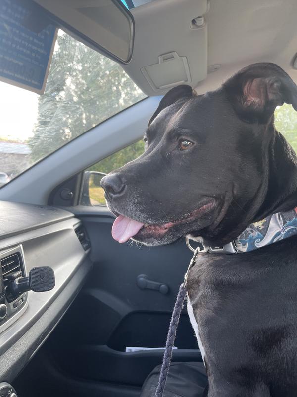 For a seatbelt buckle collar with a large dog we recommend the 1.5 inch width size. That is strong enough to withstand well over a thousand pounds of force. The leash would be ripped out of the pet parent's hand before the collar would break.